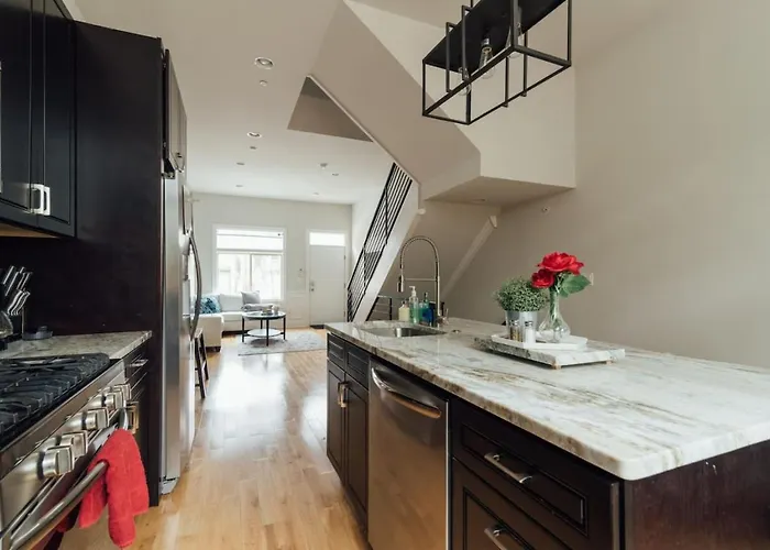 Nestled in the vibrant heart of South Philadelphia, Roof Deck Oasis Near Penn And Chop offers guests a unique escape characterized by a blend of modern luxury and local charm. Just 2.5 km from the bustling city center, this exquisite villa places you steps away from a culinary landscape brimming with famous Vietnamese pho restaurants, lively Mexican taquerias, and eclectic dive bars. Its location is perfectly balanced you can immerse yourself in the local flavor while the attractions of downtown Philadelphia remain just a stone's throw away. With convenient amenities at your fingertips, including easy access to Philadelphia International Airport, located just 11 km away, and proximity to the Pennsylvania Convention Center, 4.5 km away, travel is effortless. Guests are required to sign a rental agreement within 48 hours of booking, ensuring a streamlined check-in process. The combination of exceptional service and a prime location enhances every moment of your stay, making Roof Deck Oasis Near Penn And Chop the perfect getaway in Philadelphia.